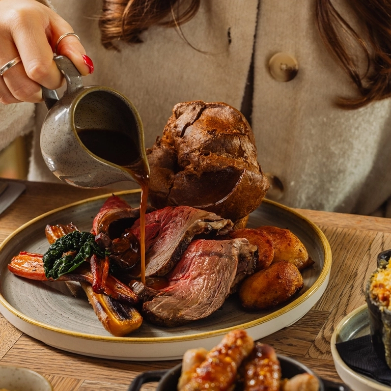 We know Sundays are sacred, and we treat them that way. Proper. Decent. Sunday. Roasts. From our rolled rump of beef, enriched with aged fat from the rib cap, to the Turner & George dry-aged pork & apple porchetta, this is Sunday done right. Add the fluffiest roast potatoes, onion purée, heritage carrots, really cheesy cauliflower cheese, and the all-important unlimited gravy and Yorkshire puds. All served family style, and you’ve got something that hits every mark. Familiar, yes, but always a cut above the rest.